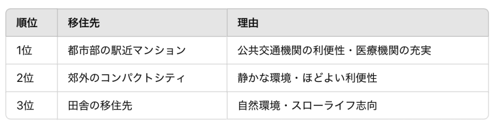 統計データによると、団塊世代(1947~1949年生まれ)の高齢者が選ぶ移住先には以下のような傾向があります。